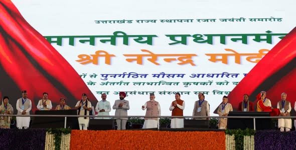 उत्तराखंड राज्य स्थापना के रजत जयंती वर्ष समारोह के अवसर पर प्रधानमंत्री श्री नरेंद्र मोदी ने आज लगभग ₹8260.72 करोड़ की विभिन्न विकास योजनाओं का लोकार्पण और शिलान्यास किया। इस दौरान प्रधानमंत्री ने प्रदेश को विकास की नई ऊँचाइयों पर ले जाने की प्रतिबद्धता दोहराई और उत्तराखंड के समग्र उत्थान का संकल्प व्यक्त किया।